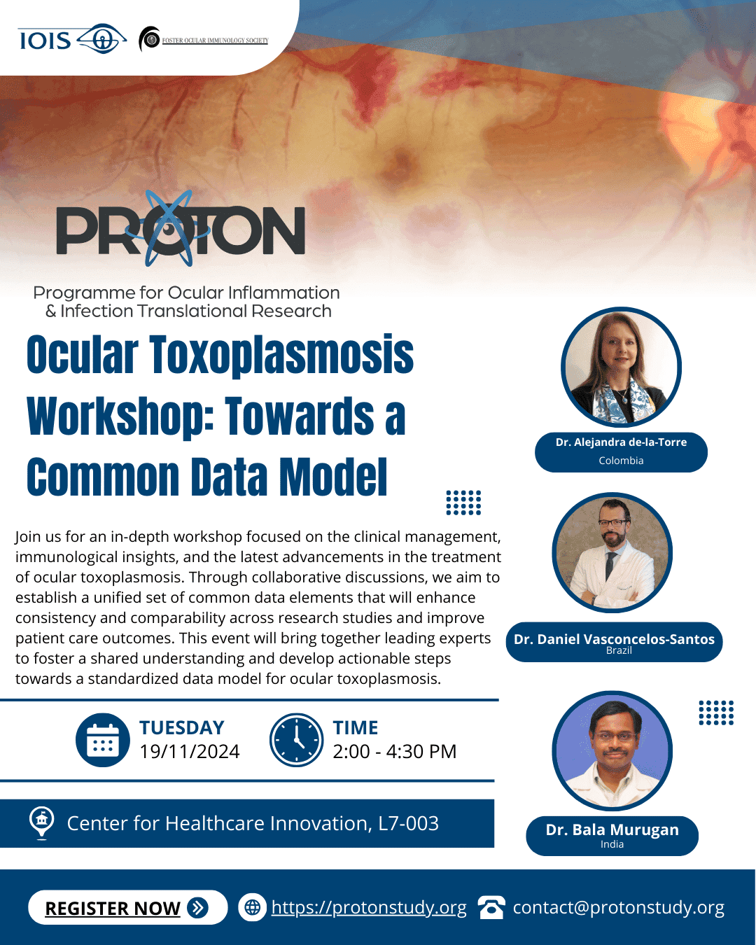 The event brought together leading experts, including Dr. Alejandra de-la-Torre (Colombia), Dr. Daniel Vasconcelos-Santos (Brazil), and Dr. Bala Murugan (India), to discuss clinical management, immunological insights, and the latest advancements in ocular toxoplasmosis treatment. Through collaborative discussions, the workshop aimed to establish a unified common data model to improve research consistency and enhance patient care outcomes. This initiative was highly appreciated for fostering international collaboration and paving the way for future research standardization. Stay tuned for updates on upcoming PROTON events at https://protonstudy.org